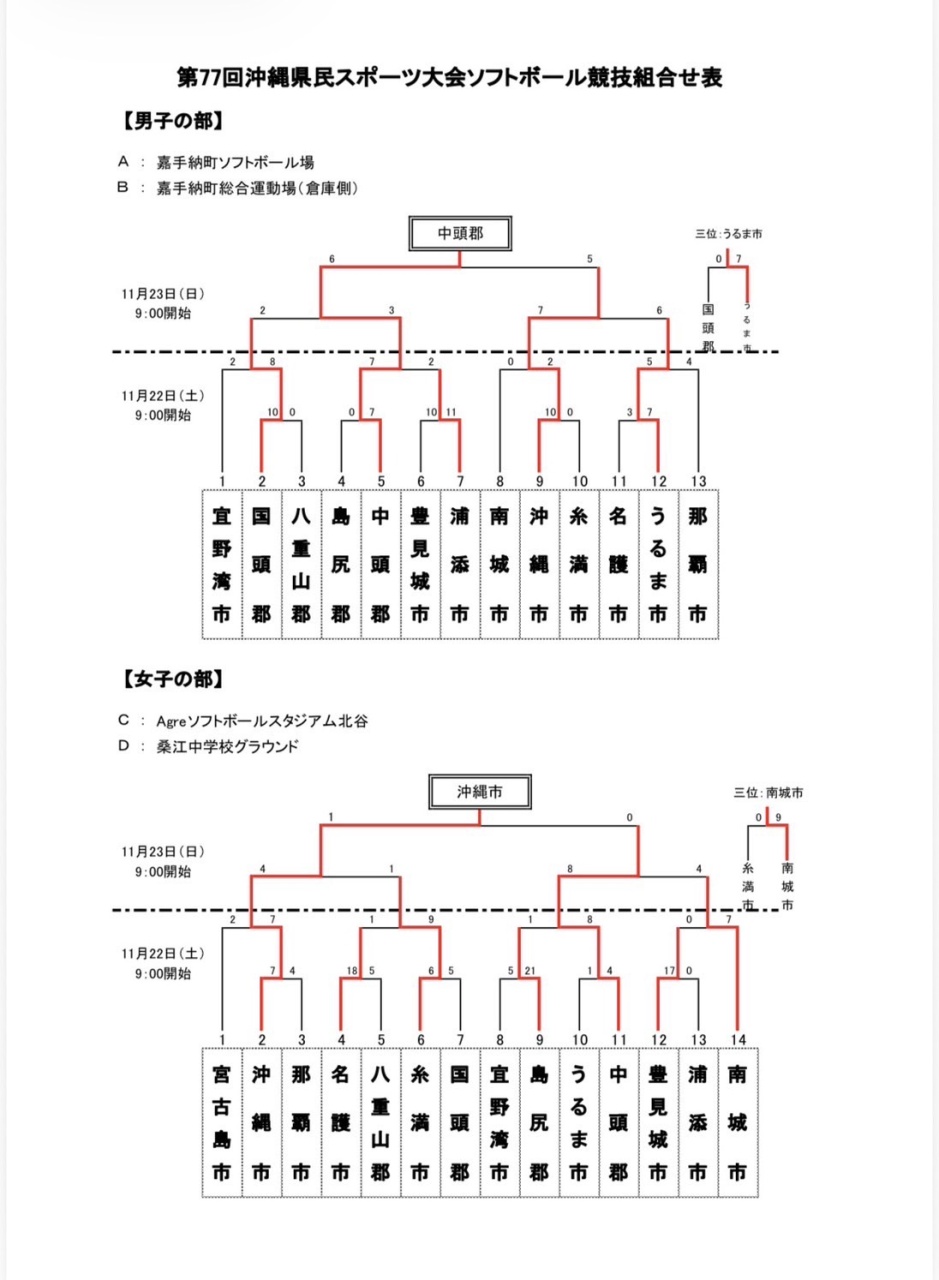 | ソフトボール | 11月22日・23日 | Agreソフトボールスタジアム北谷・桑江中学校・ 嘉手納町ソフトボール場・嘉手納町総合運動場 |